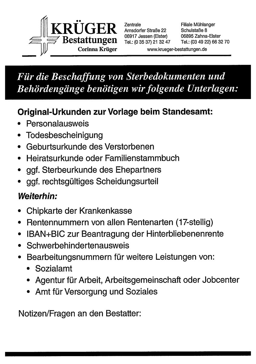 Merkliste drucken - KRÜGER Bestattungen Tel.: 03537 213247 - Jessen - Wittenberg - Annaburg